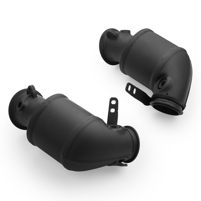 Metal core cartridges are much more durable than the original ceramic ones, and the density of 400 cpsi faithfully reflects the factory capacity, guaranteeing optimal engine power. The catalytic converter housings are coated with a special ceramic coating in black, resistant to high temperatures and minor mechanical damage. Thanks to this coating, the catalytic converter cartridges heat up faster, which means that they reach their operating temperature faster, i.e. the optimal temperature for catalyzing exhaust gases. At the same time, the ceramic coating effectively insulates the heat of the heated catalytic converters from adjacent engine compartment components.
