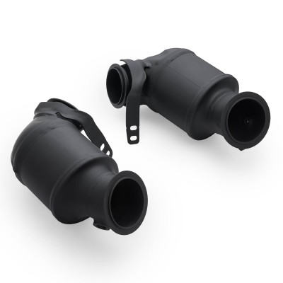 Metal core cartridges are much more durable than the original ceramic ones, and the density of 400 cpsi faithfully reflects the factory capacity, guaranteeing optimal engine power. The catalytic converter housings are coated with a special ceramic coating in black, resistant to high temperatures and minor mechanical damage. Thanks to this coating, the catalytic converter cartridges heat up faster, which means that they reach their operating temperature faster, i.e. the optimal temperature for catalyzing exhaust gases. At the same time, the ceramic coating effectively insulates the heat of the heated catalytic converters from adjacent engine compartment components.