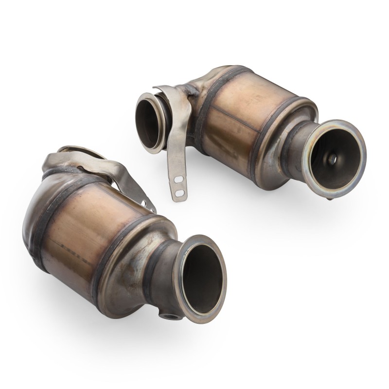 Metal core cartridges are much more durable than the original ceramic ones, and the density of 400 cpsi faithfully reflects the factory capacity, guaranteeing optimal engine power. The catalytic converter housings are coated with a special ceramic coating in black, resistant to high temperatures and minor mechanical damage. Thanks to this coating, the catalytic converter cartridges heat up faster, which means that they reach their operating temperature faster, i.e. the optimal temperature for catalyzing exhaust gases. At the same time, the ceramic coating effectively insulates the heat of the heated catalytic converters from adjacent engine compartment components.
